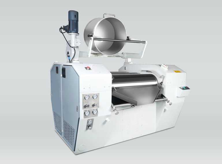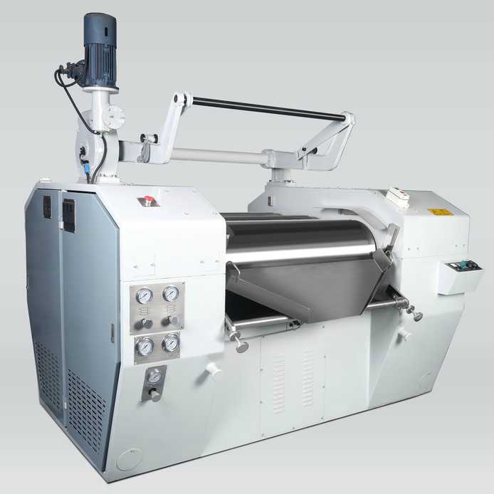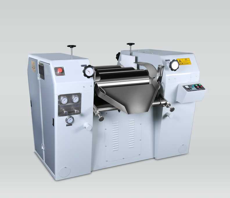 該機型最大優(yōu)點是采用變頻調(diào)速,并加裝有機械(或液壓)間隙的調(diào)整裝置,在運行中可不脫開輥筒的情況下任意調(diào)整間隙,使其達到一個最佳的狀態(tài)。以便加工各種高、中、低粘度的產(chǎn)品,產(chǎn)能是普通機的4倍左右。